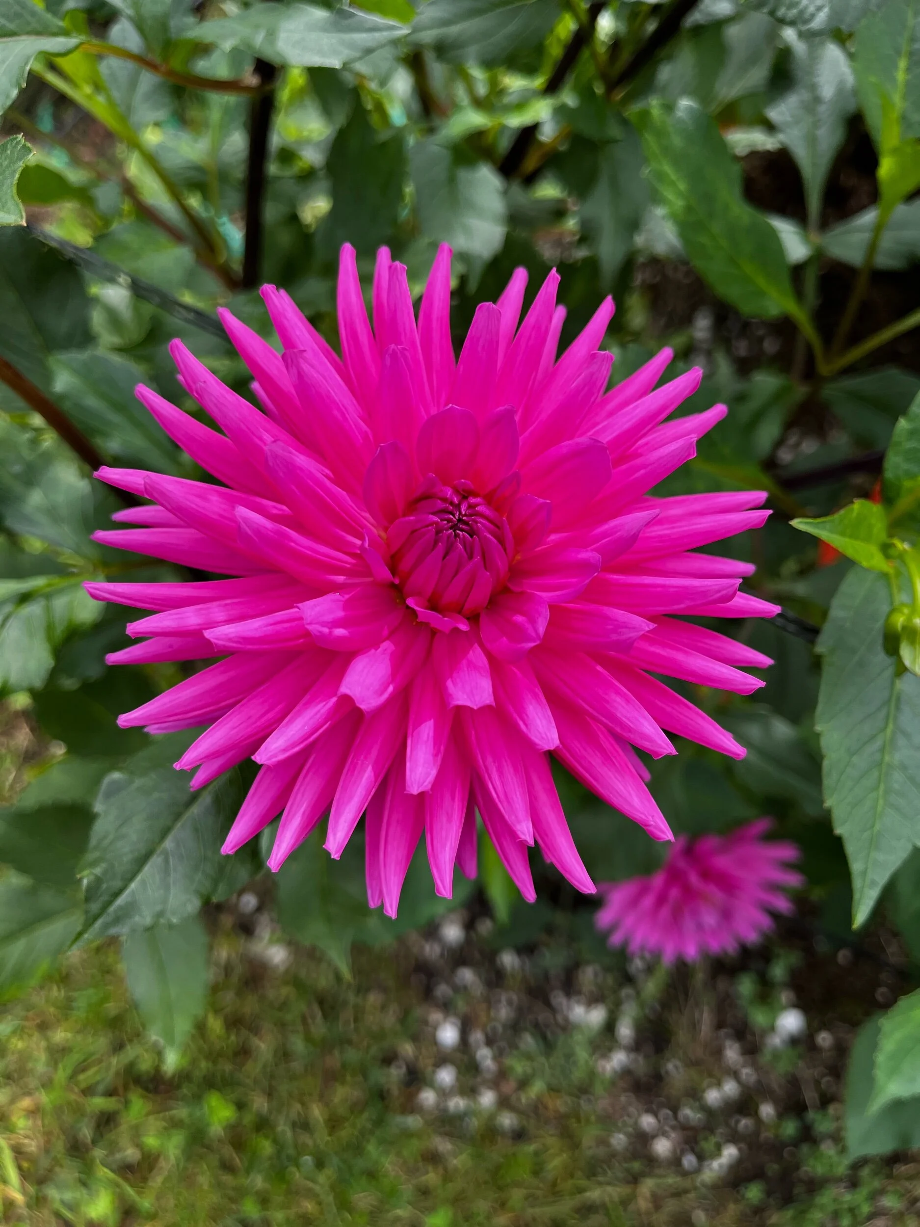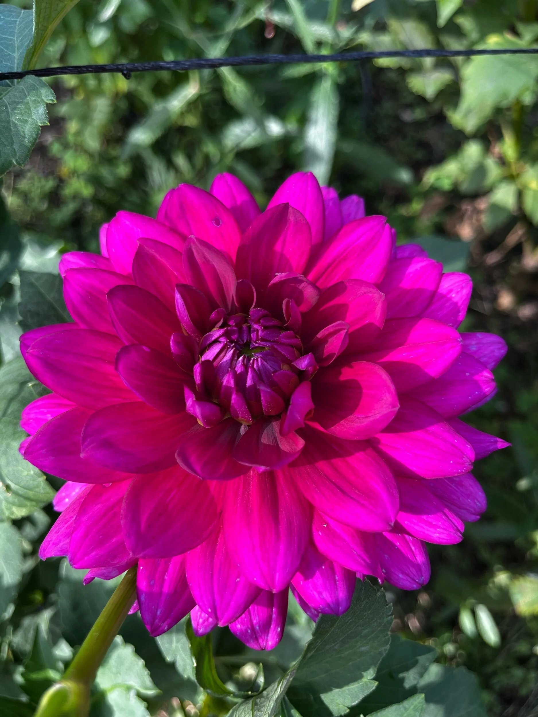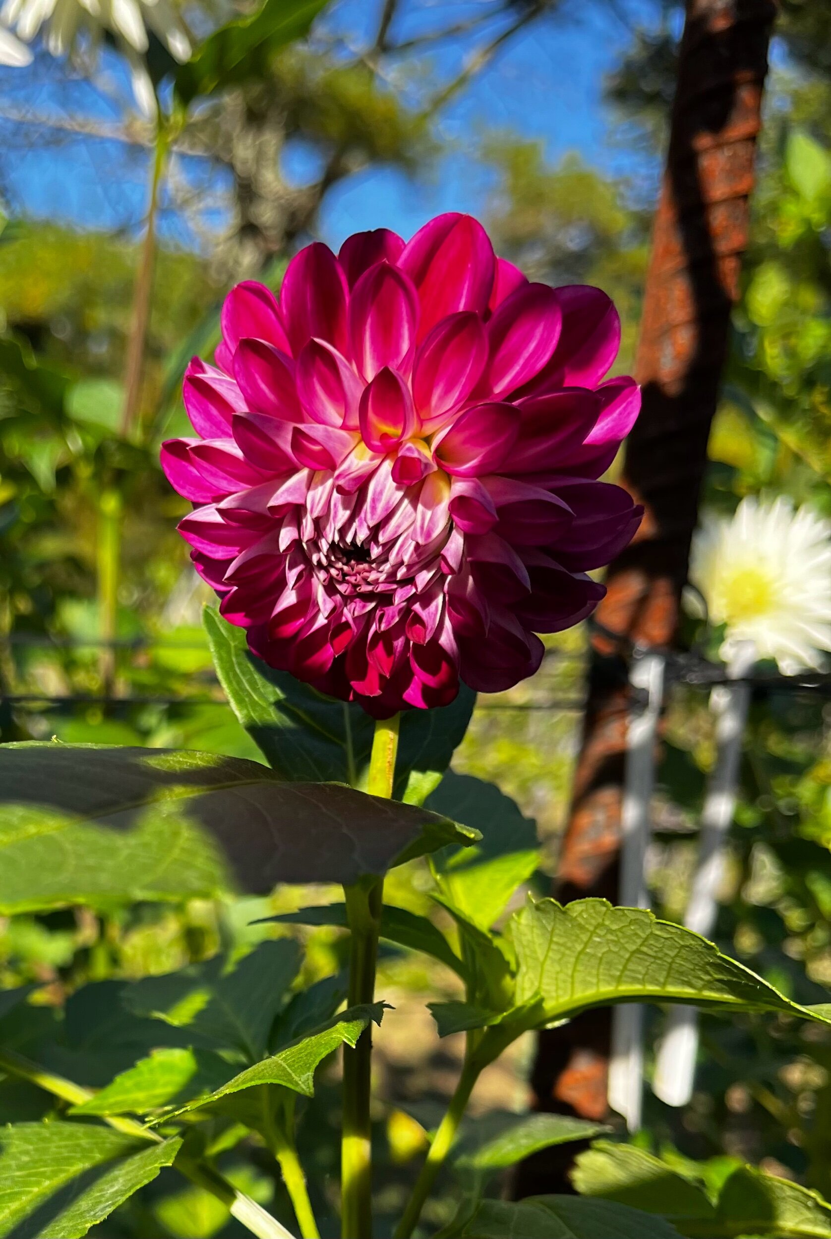 Dark red with yellow and purple centers. Similar to Bacardi, in that I wasn't sure I'd like this one, but now think it's beautiful. Blends well with many colors. Small (BB) 4” Informal Decorative blooms on 4’ plants.